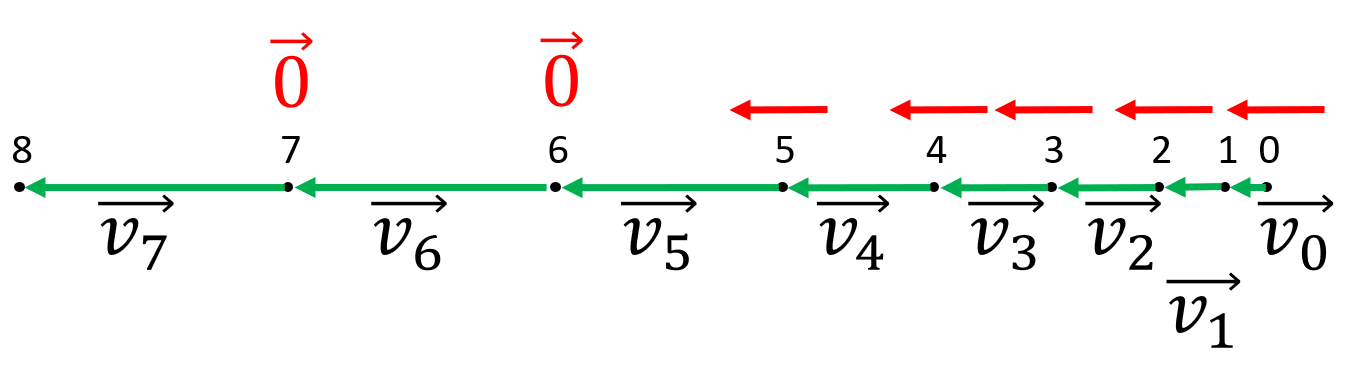• Zeichnen Sie die Beschleunigungsvektoren jeweils über die Punkten des Diagramms ein. Wenn an einem Punkt die Beschleunigung Null ist, kennzeichnen Sie den Punkt mit dem Nullvektor.