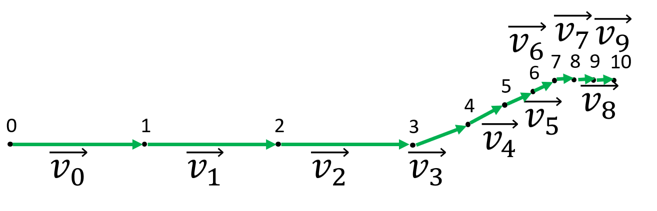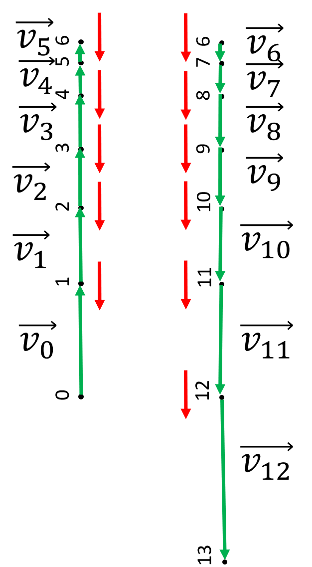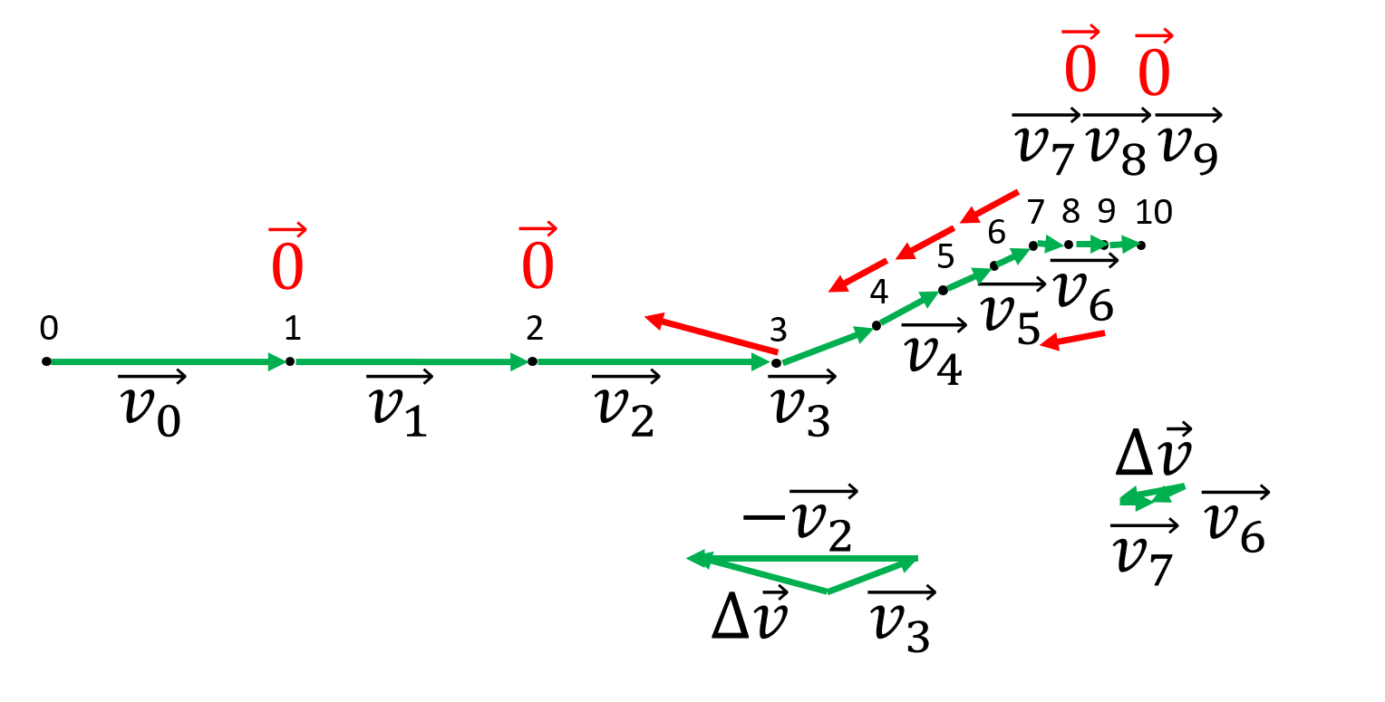• Zeichnen Sie die Geschwindigkeitsvektoren jeweils zwischen den Punkten des Diagramms ein.