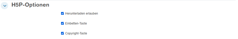- H5P-Aktivität anlegen (siehe Kapitel 3.2) und unter H5P-Optionen Einbetten-Taste aktivieren
