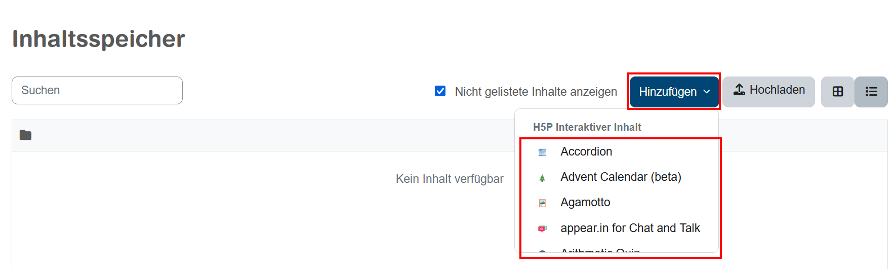 - Können H5P-Inhalte im Inhaltsspeicher erstellen