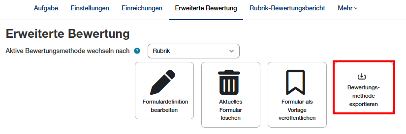 - Nutzer/innen eine Vorschau auf die Rubrik erlauben (andernfalls wird die Rubrik erst nach der Bewertung sichtbar): Die Option aktivieren, wenn man die Kriterien mit Bewertungsleveln mit den Studierenden bereits für die Abgabe anzeigen möchte.