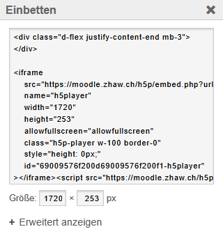 3.3. Einbetten-Code einer H5P-Aktivität einbinden