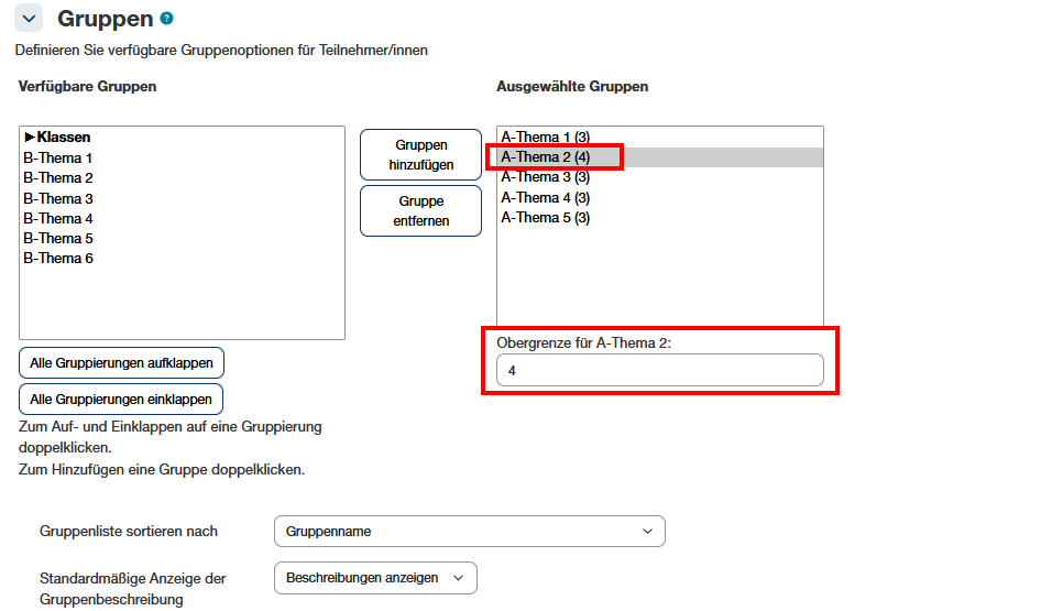 Die Obergrenze pro Gruppe kann jetzt noch angepasst werden.