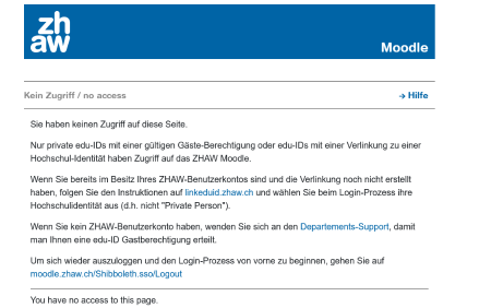 Der Gast hat eine edu-ID erstellt und die E-Mail-Adresse seiner edu-ID verifiziert. Trotzdem kann sich der Gast nicht auf Moodle anmelden, der Zugriff wird verweigert.