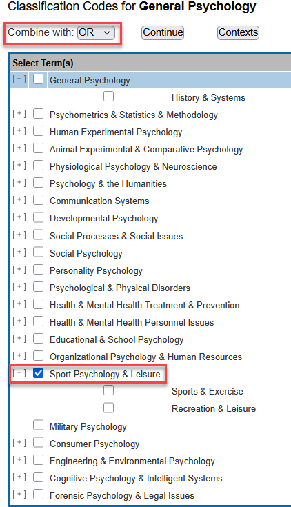Die APA Classification Codes sind ein Kategoriensystem der Psychologie, das nur in PsycINFO und PSYNDEXplus verwendet wird. Bei der Suche in den Classification Codes werden nur Treffer aus der jeweiligen Kategorie angezeigt.